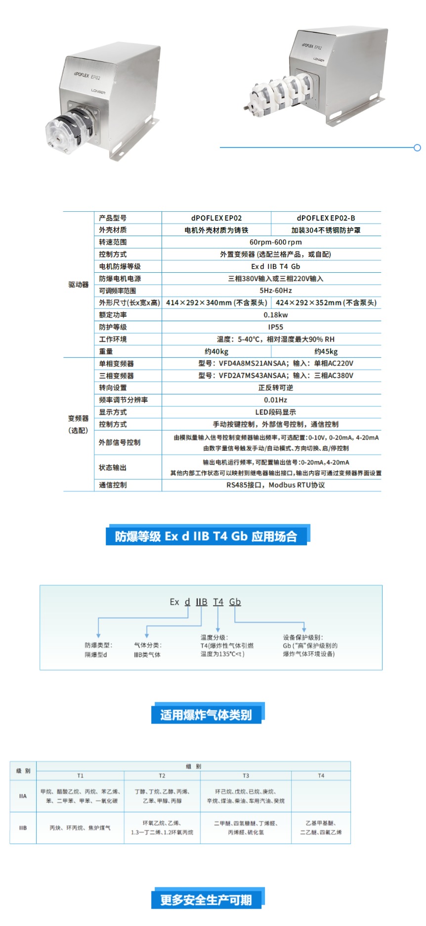 蘭格防爆電機(jī)型蠕動(dòng)泵自上市以來受到了廣泛關(guān)注。隨著制藥工藝愈加多樣,且化工行業(yè)發(fā)展迅速,蘭格現(xiàn)推出專為制藥和化工行業(yè)的生產(chǎn)需求而設(shè)計(jì)的小流量防爆電機(jī)型蠕動(dòng)泵dPOFLEX? EP02/EP02-B,其優(yōu)勢如下: