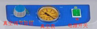 面板介紹(如圖2所示),機(jī)器面板依次為真空調(diào)節(jié)旋鈕,真空表和電源開關(guān),電源開關(guān)是手動(dòng)控制電源的開關(guān),真空調(diào)節(jié)旋鈕可以調(diào)節(jié)真空吸力的大小,指針式真空表直觀顯示真空度。
